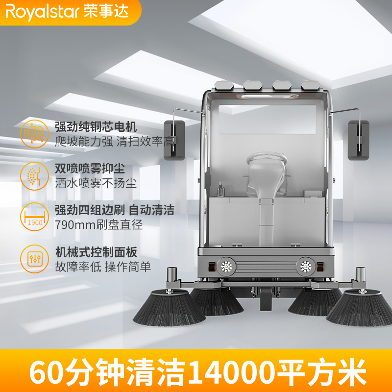 榮事達(dá)RS-CAR200駕駛式掃地車鋰電款,封閉式掃地車,操作簡單,無懼寒風(fēng)酷暑,自放電率小。