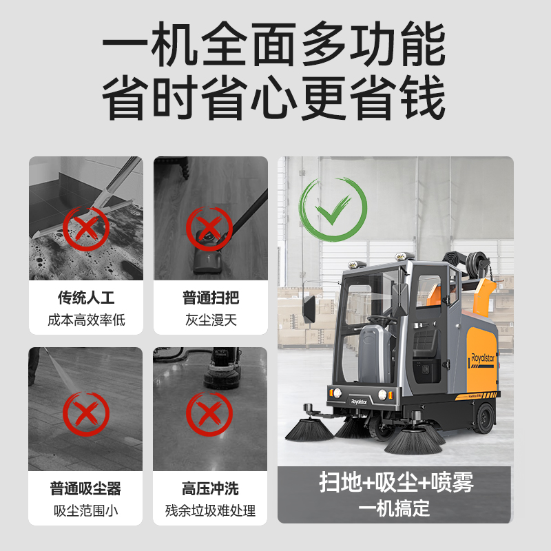 1500W驅動電機,液壓雙碟剎制動,爬坡有勁不滑坡,輕松越過減速帶,配備高壓霧炮,做到有效降塵,100AH品牌鉛酸/...