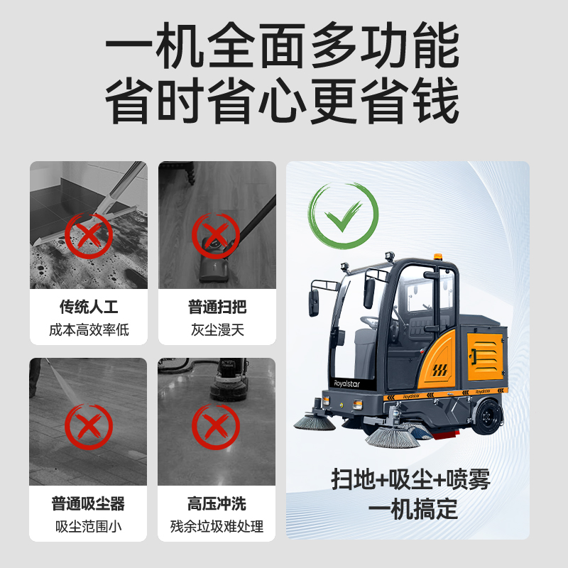 高效清掃室外駕駛式掃地車,掃地吸塵霧炮輕松應對各種場景,每小時清掃22000㎡以上,抽離式垃圾箱拆卸簡單,一鍵震塵省...