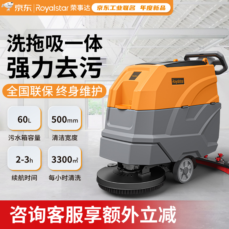 榮事達JD60手推式洗地機,洗地+擦地+吸干三合一,使用它只需幾分鐘就能把地面徹底清潔,輕松搞定。